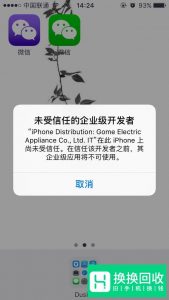 打开一些下载的App时会提醒“未受信任的企业级开发者”(以微信为例进行演示)。