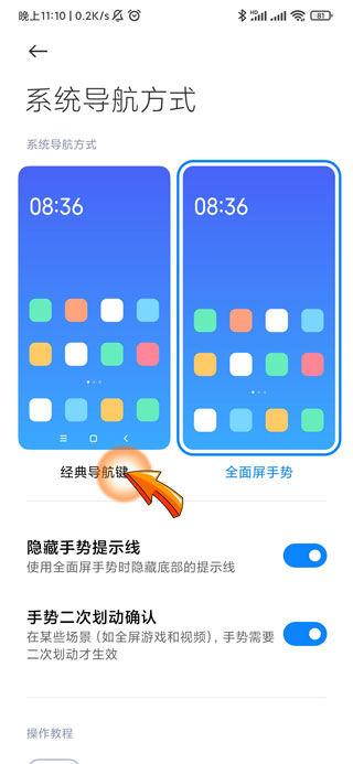4、最后点击页面右侧的“经典导航键”选项即可。