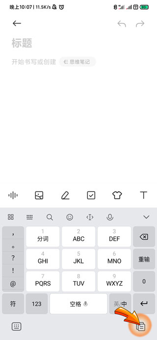 1、手机复制记录查找首先需要打开手机的输入法,点击输入栏右下角的“纸张”图标。