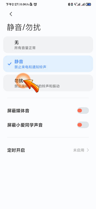 4、最后点击“勿扰”选项即可打开手机勿扰模式。