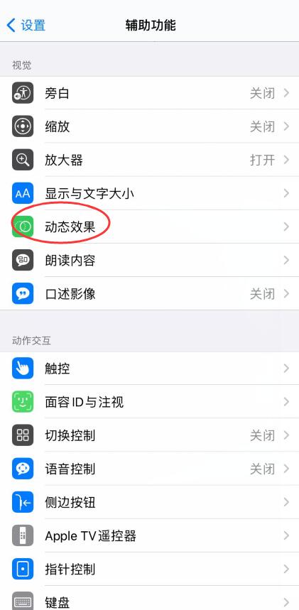返回设置选择辅助功能,选择动态效果,开启减弱动态效果即可。
